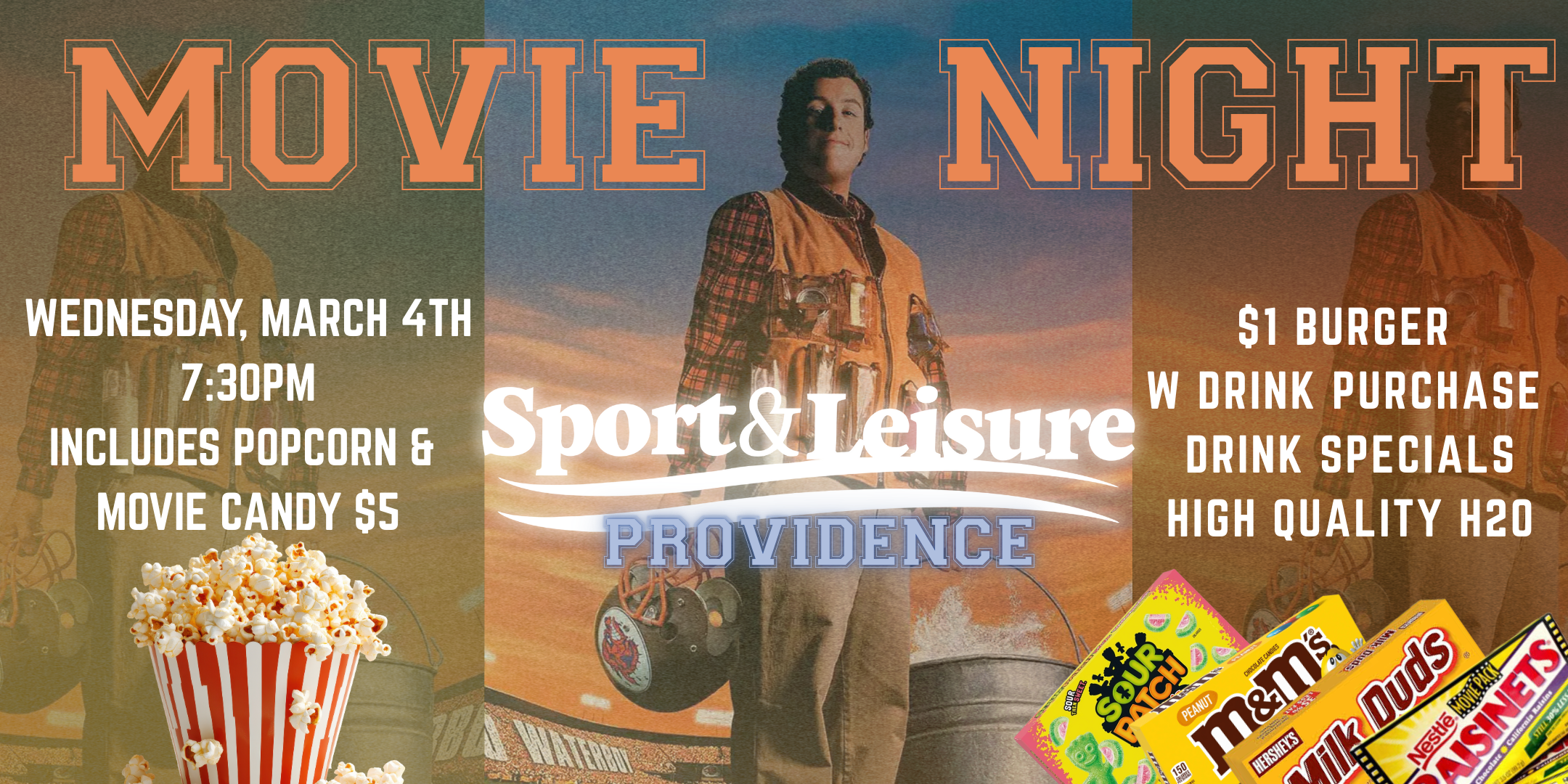 Grab your friends and kick back for Movie Night at Sport & Leisure Providence! We’re starting things off strong with a comedy classic—The Waterboy—on the big screen.