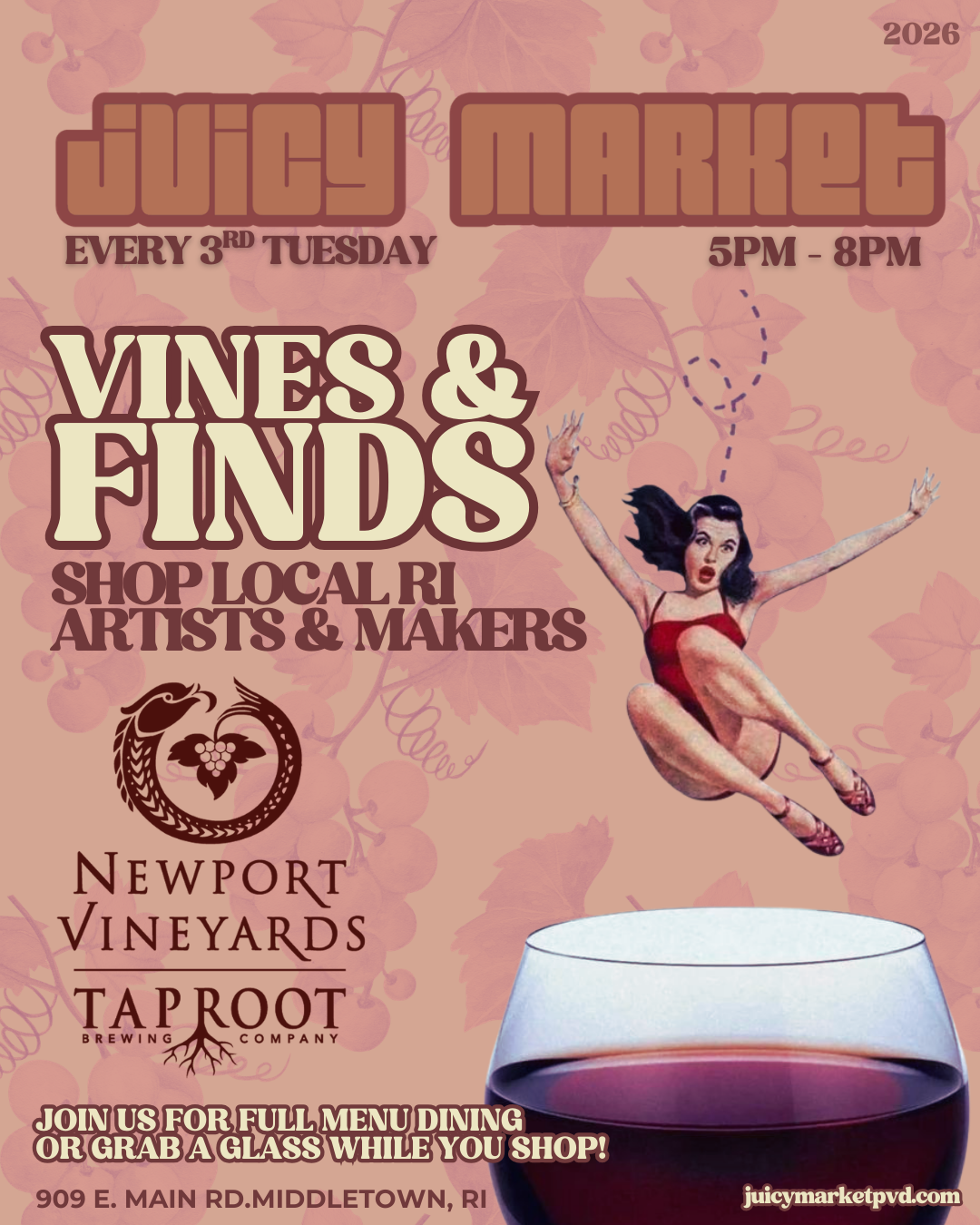 Grab your besties and join us for Vines & Finds, a monthly Sip & Shop at Newport Vineyards happening every 3rd Tuesday of the month.